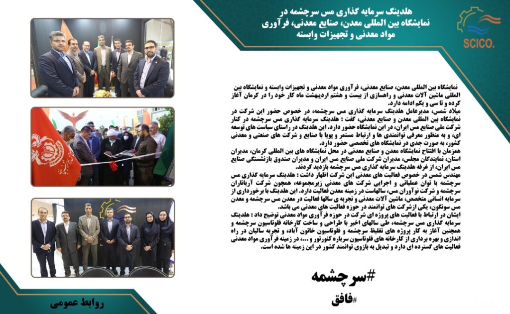 هلدینگ سرمایه گذاری مس سرچشمه در نمایشگاه بین المللی معدن، صنایع معدنی، فرآوری مواد معدنی و تجهیزات وابسته